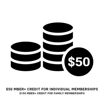 - $50 Mber+ credit for Adult, Concessions or Juniors or $150 Mber+ credit for a Family