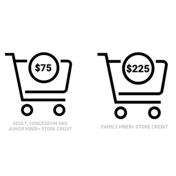 - $50 Mber+ credit for Adult, Concessions or Juniors or $150 Mber+ credit for a Family