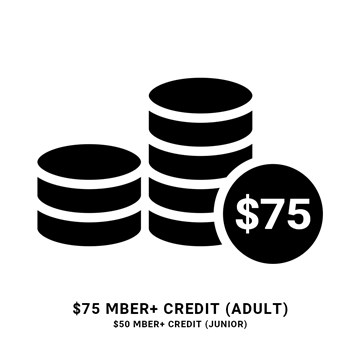 - $75 Mber+ credit for Adult or Concessions, $50 Mber+ credit for Juniors or $200 Mber+ credit for a family