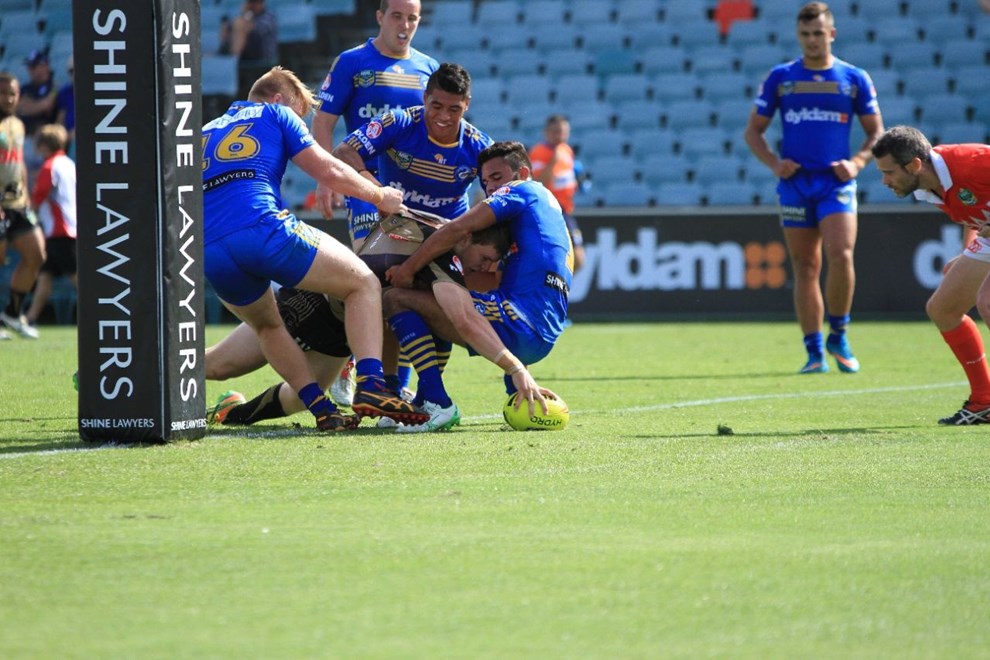 Penrith had to call on some desperate defence of their own as Troy Dargan threatened to break clear in the 19th minute. Panthers fullback Dylan Edwards somehow managed to pry the ball loose just as the Eels playmaker got in open space.