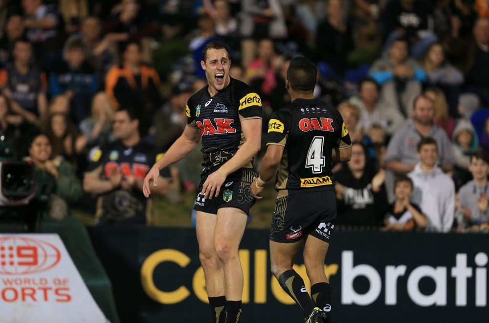 The Panthers scored seven tries to two to defeat the Wests Tigers 40-10 in front of 14,876 members and fans at Pepper Stadium.