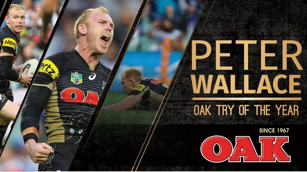 Panthers veteran Peter Wallace wins the 2016 OAK Try of the Year title for finishing off a stunning team move against the Bulldogs.