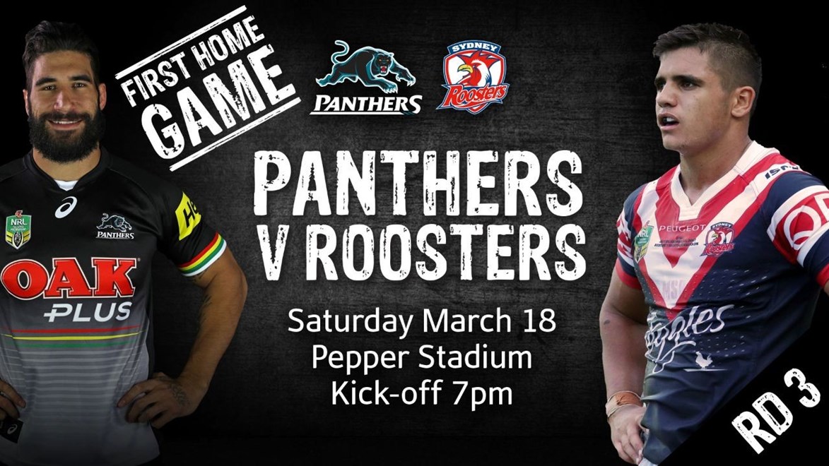 On Saturday, March 18, the Panthers will play at Pepper Stadium for the first time in 2017. They will face a rejuvenated Sydney Roosters outfit, with kick-off scheduled for 7pm.