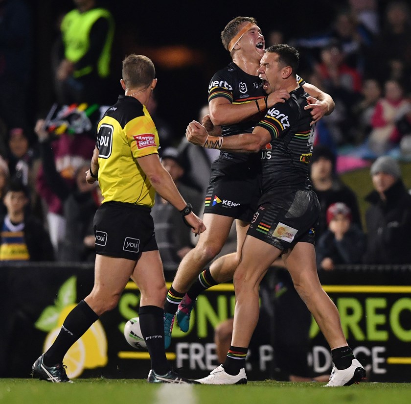 After the Panthers shifted right, To’o cut back inside, sliced through the middle, put the foot down and muscled his way over the stripe for a stunning solo try. Cleary’s conversion gave the Panthers a four-point lead at the interval.