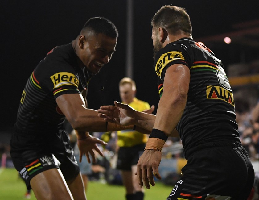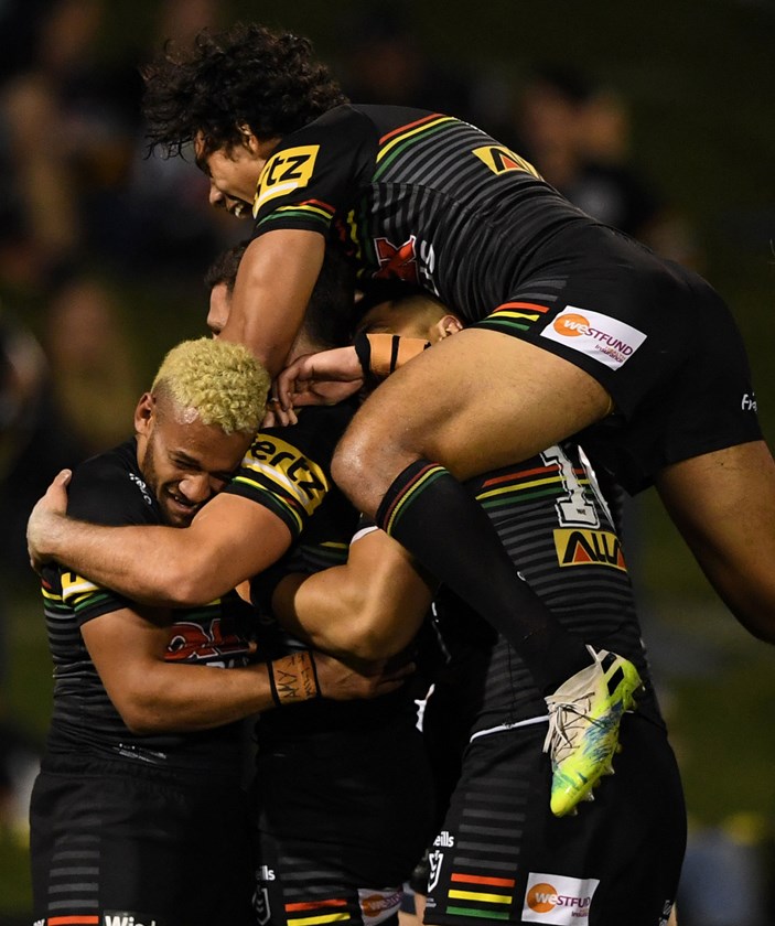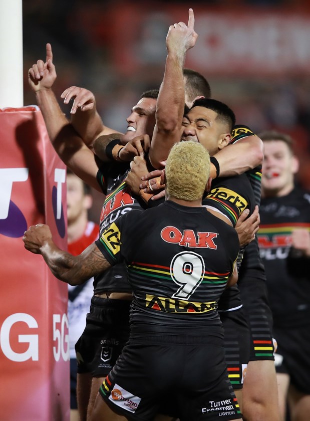 A high kick by Nathan Cleary was impressively batted down by Jarome Luai to Tyrone May, who shifted the ball over for Stephen Crichton to score out wide.