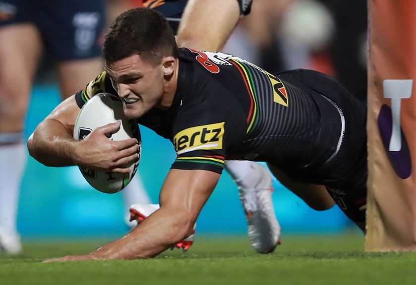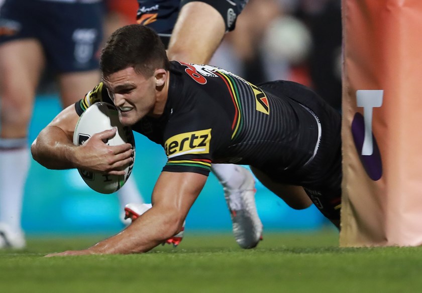Attacking the line, Edwards picked up an offload from Liam Martin and passed to Nathan Cleary on his inside for the halfback to score under the posts. Cleary added the conversion to make it 10-10 after 22 minutes.