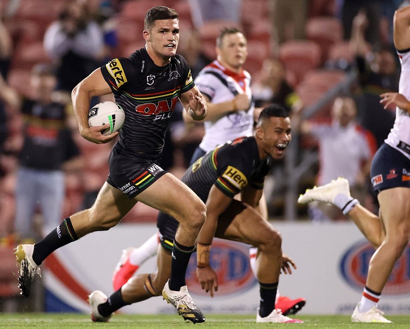 After a strong charge by Viliame Kikau, Jarome Luai jumped out of dummy half on the last tackle. Luai then poked a delicate kick through the Roosters’ defensive line, and Nathan Cleary jumped on the ball to slide over for his second try.