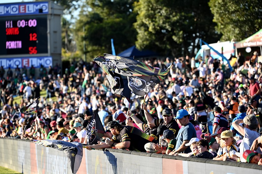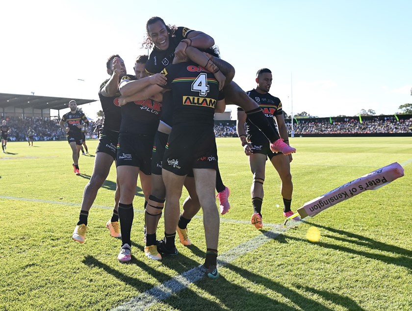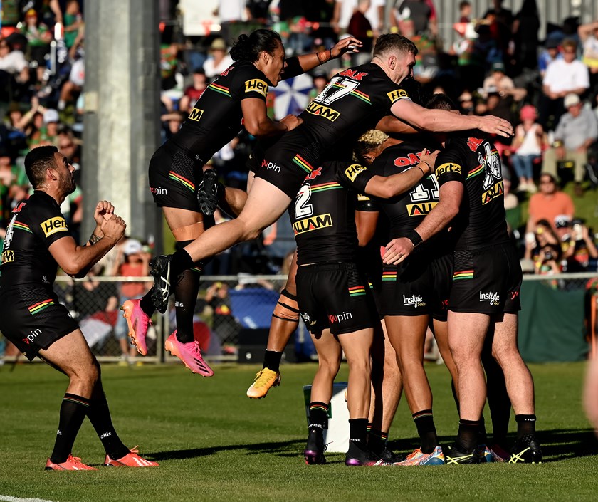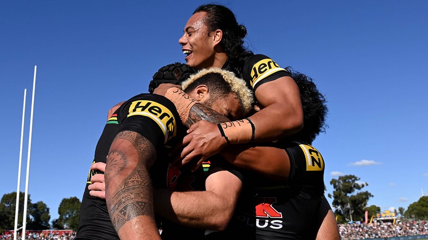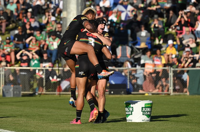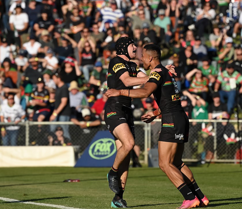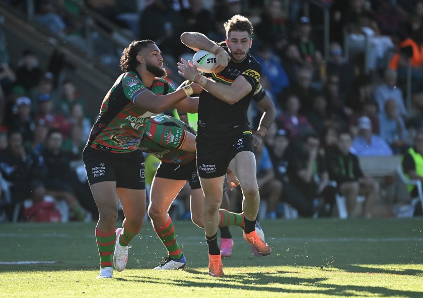 Matt Burton scored a hat-trick and Nathan Cleary collected a personal tally of 28 points (two tries and 10 goals) as the Panthers ran out 56-12 winners over the Rabbitohs at Apex Oval in Dubbo.
