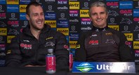 Nathan Cleary and Cameron Ciraldo chat to the media after their Round 15 clash with the Warriors