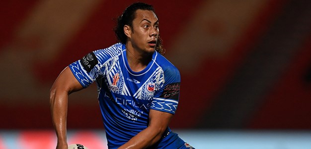 Brian To'o scores for Samoa - much to the appreciation of the crowd in Manchester