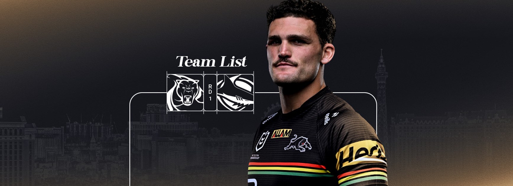 The Panthers will wear the 2025 alternate jersey for the match at Allegiant Stadium. The striking, black-and-gold kit pays tribute to the club's six premiership triumphs.