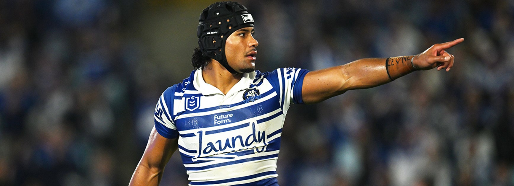 Prop for Panthers is number 8 Moses LeotaProp for Bulldogs is number 8 Max King